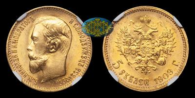 5 Рублей 1909 года, ЭБ. Санкт-Петербургский монетный двор