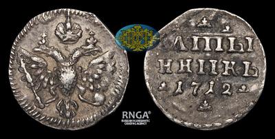 Алтынник 1712 года. Тираж неизвестен. Красный монетный двор