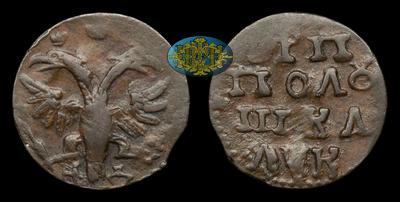 Полушка 1720 года, НД. Отчеканено на сумму 40 000 рублей. Набережный монетный двор