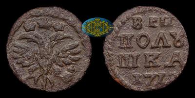 Полушка 1719 года. Тираж неизвестен. Кадашевский монетный двор