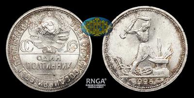 Полтинник 1926 года, ПЛ. Тип 1924-1927 годов. Ленинградский монетный двор