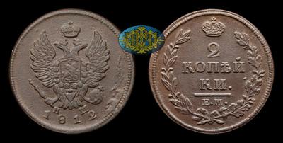 2 Копейки 1812 года, ЕМ НМ. Тип 1810-1825 годов. Тираж 132 085 700 штук. Екатеринбургский монетный двор