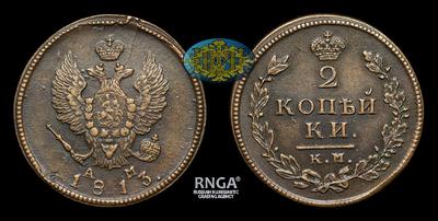 2 Копейки 1813 года, КМ АМ. Тип 1812-1825 годов. Тираж неизвестен. Сузунский монетный двор