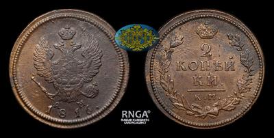 2 Копейки 1816 года, КМ АМ. Тип 1812-1825 годов. Тираж неизвестен. Сузунский монетный двор
