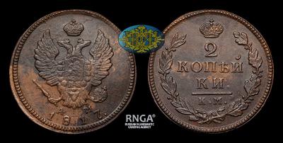 2 Копейки 1817 года, КМ АМ. Тип 1812-1825 годов. Тираж неизвестен. Сузунский монетный двор