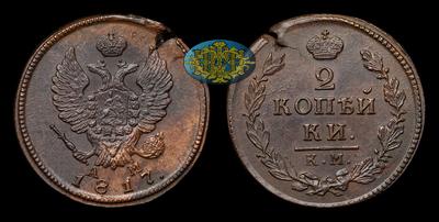 2 Копейки 1817 года, КМ АМ. Тип 1812-1825 годов. Тираж неизвестен. Сузунский монетный двор