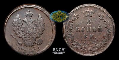 2 Копейки 1823 года, ЕМ ФТ. Тип 1810-1825 годов. Тираж 44 935 00 штук (все типы). Екатеринбургский монетный двор