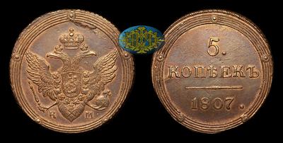 5 Копеек 1807 года, КМ. Тип 1802-1810 годов. Тираж неизвестен. Сузунский монетный двор