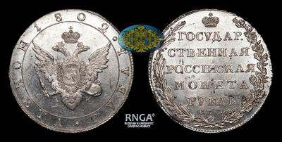 Рубль 1802 года, СПБ АИ. Тип 1802-1805 годов. Тираж 5 360 015 штук. Банковский монетный двор