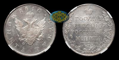 Рубль 1810 года, СПБ ФГ. Тип 1807-1810 годов. Тираж 1 682 663 штуки. Санкт-Петербургский монетный двор