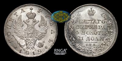 Рубль 1818 года, СПБ ПС. Тираж 16 275 000 штук (все типы). Санкт-Петербургский монетный двор