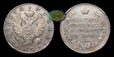 Рубль 1823 года, СПБ ПД. Тираж 2 955 000 штук. Санкт-Петербургский монетный двор