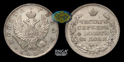 Рубль 1824 года, СПБ ПД. Тип 1817-1825 годов. Санкт-Петербургский монетный двор