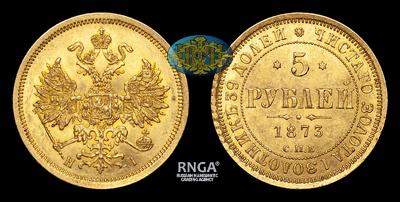 5 Рублей 1873 года, СПБ HI. Тираж 3 000 003 штук. Санкт-Петербургский монетный двор