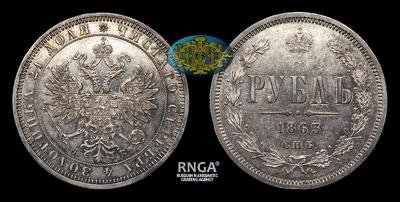 По официальным данным Санкт-Петербургского монетного двора тираж рубля 1863 года составил 5 193 штуки.
