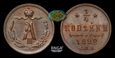 1/4 Копейки 1892 года, СПБ. Тираж 918 000 штук. Санкт-Петербургский монетный двор