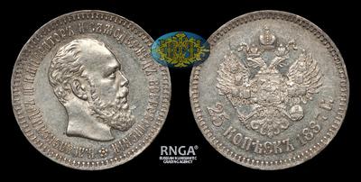 25 Копеек 1887 года, АГ. Тираж 28 004 штуки. Санкт-Петербургский монетный двор