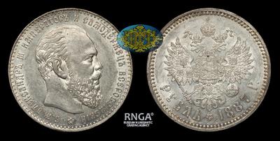 Рубль 1887 года, АГ. Тираж 490 504 штуки (все типы). Санкт-Петербургский монетный двор