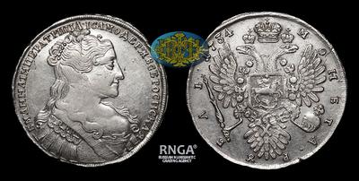 Рубль 1734 года. Тираж 2 460 699 штук. Кадашевский монетный двор
