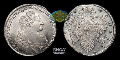 Рубль 1736 года. Тираж 1 047 209 штук. Кадашевский монетный двор