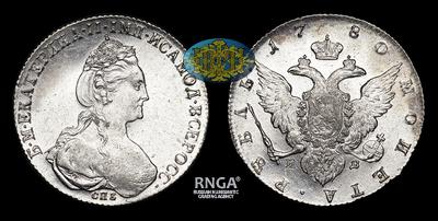 Рубль 1780 года, СПБ ИЗ. Тип 1777-1782 годов. Санкт-Петербургский монетный двор