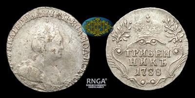 Гривенник 1788 года, СПБ. Тираж 3 067 000 штук. Санкт-Петербургский монетный двор