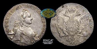 РУБЛЬ 1764 ГОДА, СПБ TI СА. Тираж 3 016 452 штуки. САНКТ-ПЕТЕРБУРГСКИЙ МОНЕТНЫЙ ДВОР