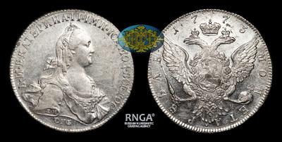 Рубль 1773 года, СПБ ТИ ЯЧ. Тираж 2 378 000 штук (все типы). Санкт-Петербургский монетный двор