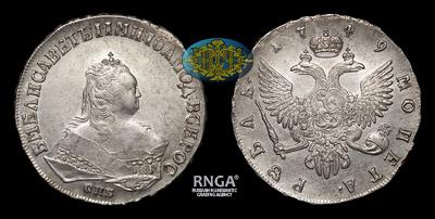 Рубль 1749 года, СПБ. Тираж 1 106 306 штук. Санкт-Петербургский монетный двор
