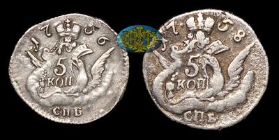 5 Копеек 1758 года, СПБ. Тираж 3 577 000 штук. Санкт-Петербургский монетный двор