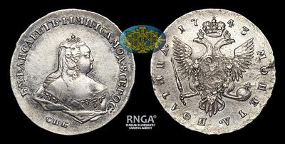 ПОЛТИНА 1743 ГОДА, СПБ. ТИРАЖ 64 794 ШТУКИ. САНКТ-ПЕТЕРБУРГСКИЙ МОНЕТНЫЙ ДВОР