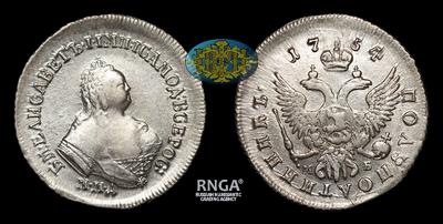 Полуполтинник 1754 года, ММД МБ. Тираж 689 400 штук. Красный монетный двор