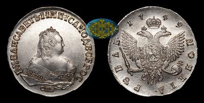 Рубль 1749 года, СПБ. Тип 1741-1754 годов. Санкт-Петербургский монетный двор