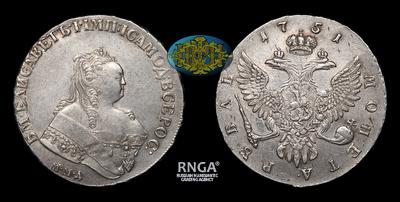 Рубль 1751 года, ММД. Тираж 1 083 350 штук. Красный монетный двор