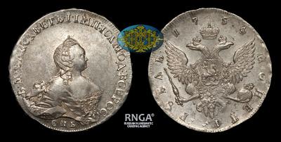 Рубль 1754 года, СПБ BS IM. Тип 1754-1757 годов. Портрет Б.Скотта. Санкт-Петербургский монетный двор