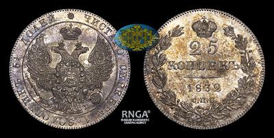 25 Копеек 1832 года, СПБ НГ. Тираж 308 005 штук. Санкт-Петербургский монетный двор