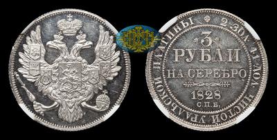 3 Рубля 1828 года, СПБ. Тираж 20 023 штук. Санкт-Петербургский монетный двор