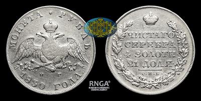 Рубль 1830 года, СПБ НГ. Тип 1826-1831 годов. Тираж 6 010 007 штук (все типы). Санкт-Петербургский монетный двор