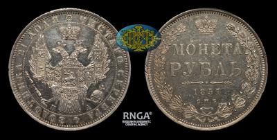 Рубль 1851 года, СПБ ПА. Тираж 2 400 001 штука (все типы). Санкт-Петербургский монетный двор