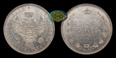 Рубль 1854 года, СПБ HI. Тираж 3 070 103 штуки. Санкт-Петербургский монетный двор