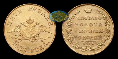 5 Рублей 1828 года, СПБ ПД. Тираж 604 103 штуки. Санкт-Петербургский монетный двор