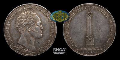 Рубль 1839 года. H.GUBE F., "В память открытия памятника-часовни на Бородинском поле". Тираж 160 000 штук. Санкт-Петербургский монетный двор