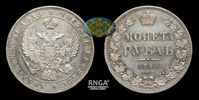 Рубль 1844 года, СПБ КБ. Тираж 2 928 585 штук. Санкт-Петербургский монетный двор