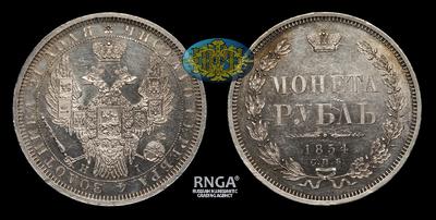 Рубль 1854 года, СПБ HI. Тираж 3 070 103 штуки. Санкт-Петербургский монетный двор