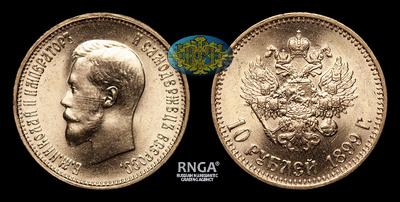 10 Рублей 1899 года, АГ. Тираж 27 600 013 штук. Санкт-Петербургский монетный двор