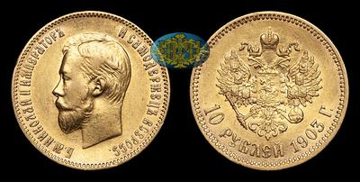 10 Рублей 1903 года, АР. Тираж 2 817 019 штук. Санкт-Петербургский монетный двор