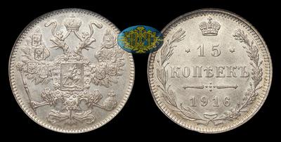 15 Копеек 1916 года. Тираж 96 666 000 штук. Осакский монетный двор