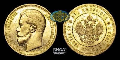 2 1/2 Империала - 25 Рублей 1896 года "В память Коронации Императора Николая II". Тираж 301 штука. Санкт-Петербургский монетный двор