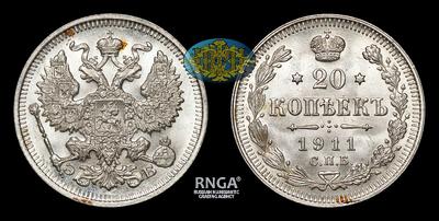 20 Копеек 1911 года, СПБ ЭБ. Санкт-Петербургский монетный двор