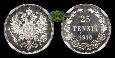 25 Пенни 1910 года, L. Тираж 392 000 штук. Гельсингфорсский монетный двор